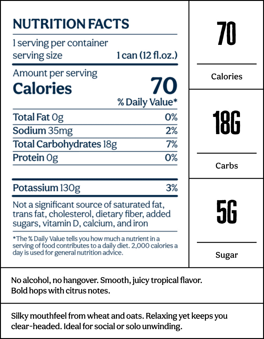 Water, Malt, Oats, Barley, Hops, Natural Flavors, Hemp-based Delta 9 THC emulsion, Hemp-based CBD emulsion.